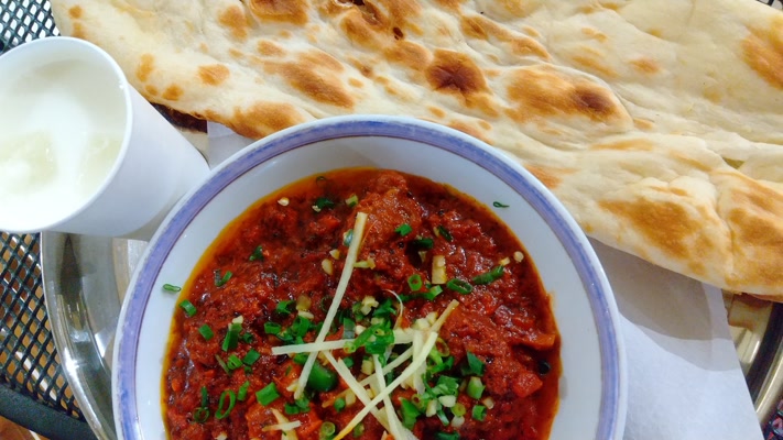 これは、お気に入りのひとつ。パキスタンの伝統肉料理。ニンニク、トマト、青唐辛子が効いたスパイシーカレー。